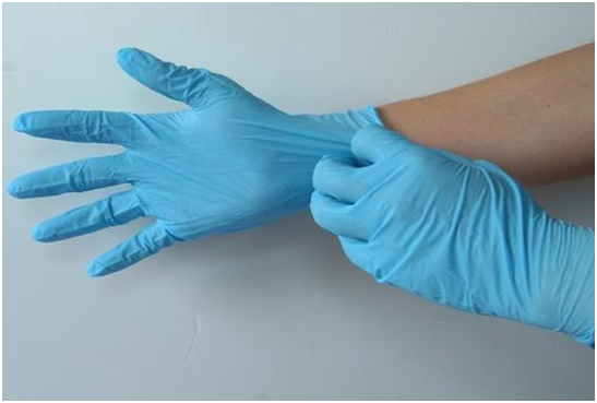 4、丁晴手套一般比較薄,彈力比較大,所以在戴的時候要尤其注意,一定要從指間戴,然后慢慢的向上拉,千萬不要先讓手掌進入手套,這樣手套一定會破的,必要的時候可以抹上一點油、或者是一點潤滑劑,這樣能夠減少穿戴時候的阻力。