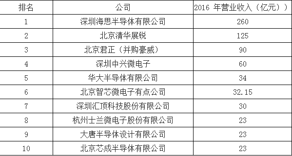 部分國內企業已擁有較強國際競爭力。中國大陸 IC 設計公司從 2015 年的736 家大幅增加到 2016 年的 1362 家。在純設計企業方面,2009 年大陸僅有深圳海思半導體一家進入全球前 50 純 IC 設計業者之列,而 2016 年已有海思、展訊、中興微電子等 11 家企業進入。我國純 IC 設計業者合計銷售額占全球的比例已從 2010 年的 5%提升至 2016 年的 10%。