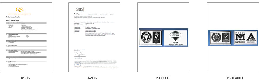 AClean通過國際權(quán)威認證可以出具各種品質(zhì)資料,目前AClean丁腈手套可以提供以下證書:,如MSDS、ROHS、ISO9001、ISO14001等。應(yīng)客戶要求,可提供各種品質(zhì)證明資料。